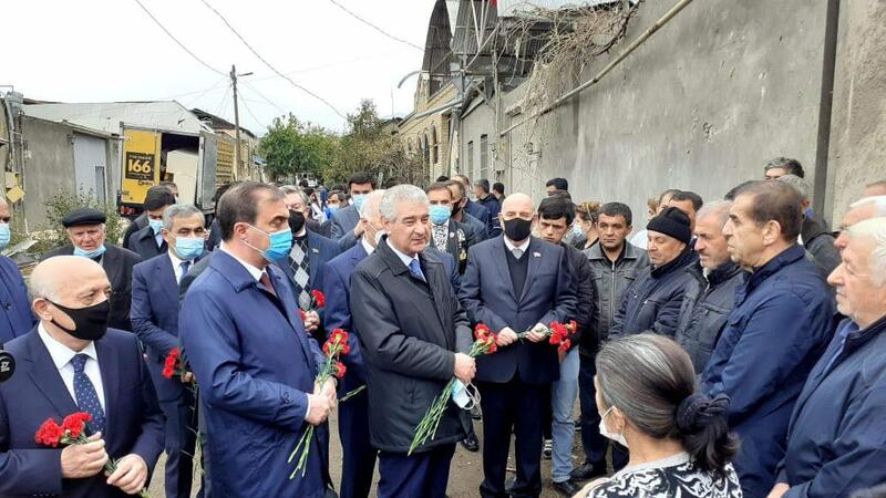 Etmtv. news xəbər verir ki, rəsmilər raket zərbələrinin səbəb olduğu dağıntıların olduğu əraziyə baxış keçirərək, gül dəstələri qoyublar.