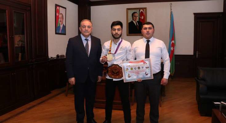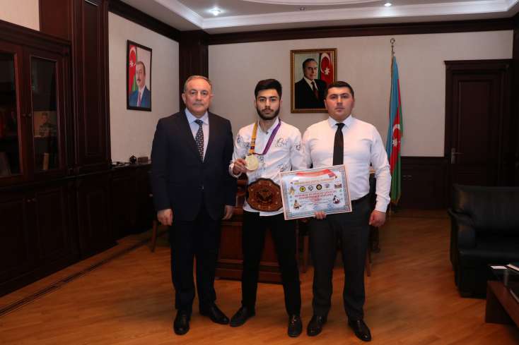 Rektor Vilayət Vəliyev Əli Hacıyevi və onun məşqçisi Hikmət Mahmudovu qəbul edib. Qələbə münasibətilə təbriklərini çatdıran rektor, qarşıdakı yarışlarda tələbəmizə uğurlar arzulayıb.