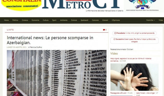 Ermənistanın Azərbaycana qarşı hərbi təcavüzü nəticəsində 4 minədək azərbaycanlının itkin düşməsi mövzusu 30 Avqust – Beynəlxalq İtkin Düşmüşlər Günündə İtaliyanın kütləvi informasiya vasitələrinin diqqətində olub.