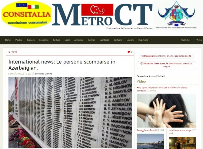 Ermənistanın Azərbaycana qarşı hərbi təcavüzü nəticəsində 4 minədək azərbaycanlının itkin düşməsi mövzusu 30 Avqust – Beynəlxalq İtkin Düşmüşlər Günündə İtaliyanın kütləvi informasiya vasitələrinin diqqətində olub.