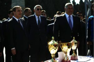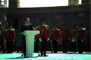 Təntənəli mərasim Dövlət himinin səslənməsi ilə başlayıb.