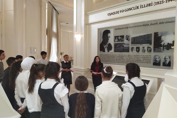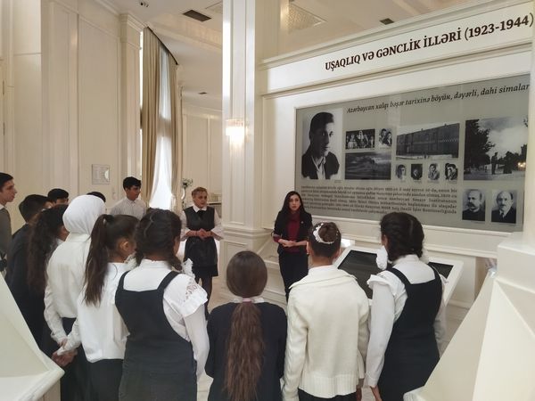 Mərkəzin bələdçisi Sevinc Bədəlova şagirlərə Ulu Öndər Heydər Əliyevin Xatirə Muzeyində nümayiş olunan eksponatlar haqqında ətraflı məlumat verib.