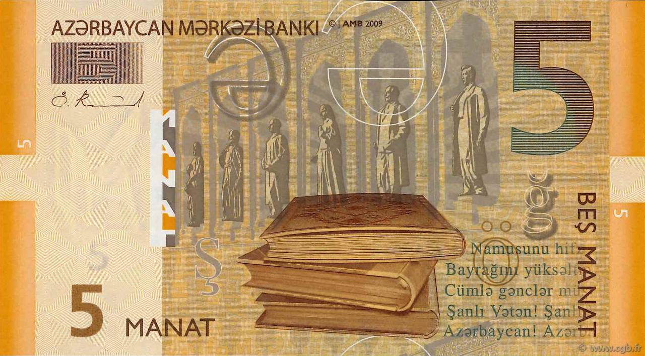 Hazırda dövriyyədə olan 5 manatlıq əsginaslar 2005 və 2009-cu illərdə Azərbaycan Mərkəzi Bankı tərəfindən buraxılmışdır. Bu əsginaslar yazı və ədəbiyyat mövzusuna həsr olunub.