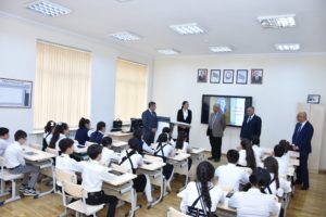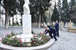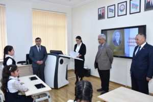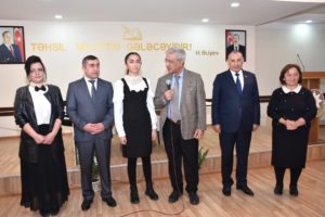 Əvvəlcə qonaqlar məktəbin qarşısında ucaldılmış görkəmli alim, yazıçı, pedaqoq Mir Cəlal Paşayevin büstü önünə gül dəstələri qoyublar. Daha sonra sinif otaqlarında bir qrup şagird və müəllim ilə görüş keçirilib.