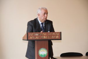 “İlham Əliyev və müasir Azərbaycan gəncliyi” mövzusunda bakalavriat və magistrantların xarici dillərdə (ingilis, alman, fransız, rus) ümumşəhər elmi-nəzəri konfransının keçirilməsində  məqsəd tələbələrin xarici dillərə marağını artırmaq, gənclərin yaradıcılıq potensialına, onların yeni ideyalarının aşkara çıxarılmasına meydan verməkdir. Təbii ki, bu gün Azərbaycan dünya birliyi ölkələri ilə ictimai həyatın bütün sahələrində səmərəli əməkdaşlıq edən bir ölkədir. Ona görə də gənclərin, xüsusilə gənc alimlərin xarici dilləri bilməsi çox vacibdir. Onlar nə qədər çox dil bilsələr, bir o qədər zəngin dünyagörüşünə malik olarlar. Bu müasir dünyanın tələbidir”- rektor çıxışında qeyd edib.