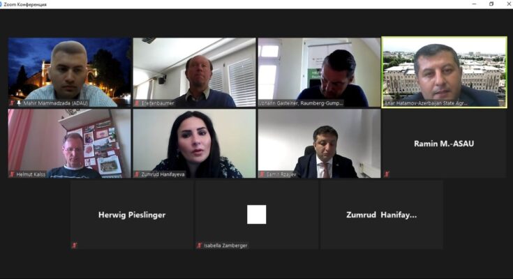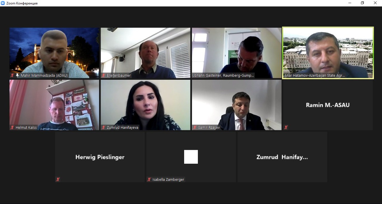 Azərbaycan Dövlət Aqrar Universiteti (ADAU) ilə Avstriyanın təhsil və elmi-tədqiqat müəssisələri arasında əməkdaşlıq məsələlərinin müzakirəsi məqsədilə onlayn görüş keçirilmişdir. Ölkəmizin Avstriyadakı Səfirliyinin vasitəsilə keçirilən görüşdə adı çəkilən ölkənin Ali Federal Tədris və Tədqiqat Mərkəzinin direktor müavini, Tədqiqat və İnnovasiyalar üzrə Rəhbər Johann Gasteiner və digər əməkdaşlar iştirak etmişdir. ADAU – nun tədris işləri üzrə prorektoru, dosent Anar Hətəmov universitetin maddi – texniki bazası, təhsil proqramları, beynəlxalq əlaqələri, o cümlədən universitetin nəzdində yaradılan Peşə Təhsil Mərkəzinin imkanları barədə məlumat verilmişdir. Bildirilmişdir ki, 09 iyul 2020-ci il tarixində ADAU ilə Avstriyanın Vyana Təbii Sərvətlər və Tətbiqi Elmlər Universiteti (BOKU) arasında Erasmus Joint Mundus proqramı çərçivəsində müqavilə imzalanmış və bitkiçilik sahəsi üzrə magistratura səviyyəsində təhsil almaq üçün 8 tələbənin sənədi göndərilmişdir.
