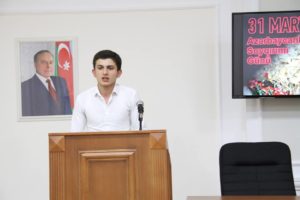 ADAU-nun mətbuat xidmətindən verilən xəbərə görə anım mərasimində təhsil müəssisəsinin tərbiyə işləri üzrə prorektoru Aidə Qasımova çıxış edib və  bildirilib ki, martın 30-da səhər erməni-bolşevik dəstələri Bakını hərbi gəmilərdən atəşə tutublar. Artilleriya atəşindən sonra silahlı daşnaklar azərbaycanlıların evlərinə soxularaq, onları amansızcasına qətlə yetiriblər. Martın 31-dən aprelin 1-nə keçən gecə azərbaycanlı əhaliyə qarşı qırğın kütləvi xarakter alıb. 3 gün ərzində Bakıda 17 min nəfər öldürülüb. Ermənilər Bakı, Şamaxı və Quba qəzalarında, Qarabağda, Zəngəzurda, Naxçıvanda, Lənkəranda azərbaycanlı əhaliyə xüsusi amansızlıqla divan tutublar.