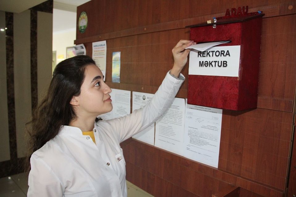 Bu tədbirlərlə yanaşı, rektorun göstərişi ilə fakültələrdə “Rektora məktub” qutuları qoyulub. Tələbələr, eləcə də müəllimlər və digər əməkdaşlar öz rəy və təkliflərini bu qutular vasitəsilə də rektora ünvanlaya bilərlər.
