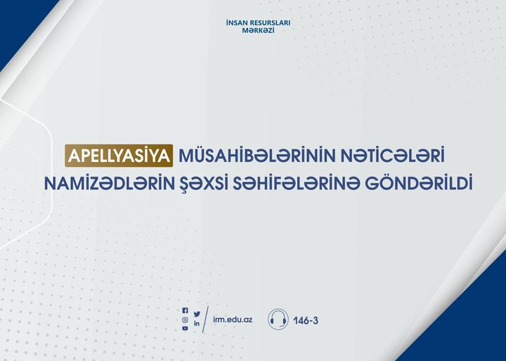 Dövlət ümumi təhsil müəssisələrinə müddətsiz müqavilə ilə müəllimlərin işə qəbulu üzrə müsabiqənin əlavə vakansiya seçimində vakant yer tutan şəxslərin apellyasiya müsahibələrinin nəticələri barədə məlumat şəxsi səhifələrinə göndərilib.