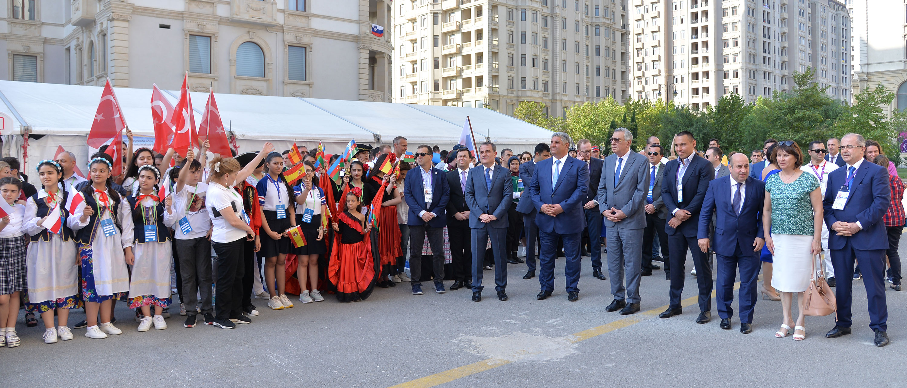 Mərasimdə Gənclər və İdman naziri Azad Rəhimov, Təhsil naziri Ceyhun Bayramov, Milli Olimpiya Komitəsinin (MOK) vitse-prezidentləri Çingiz Hüseynzadə, Xəzər İsayev, MOK baş katibinin müavini Azər Əliyev, üzv ölkələrin Milli Olimpiya komitələrinin rəsmiləri, Azərbaycanda fəaliyyət göstərən diplomatik korpusun nümayəndələri, müxtəlif ölkələrdən olan qonaqlar iştirak ediblər.