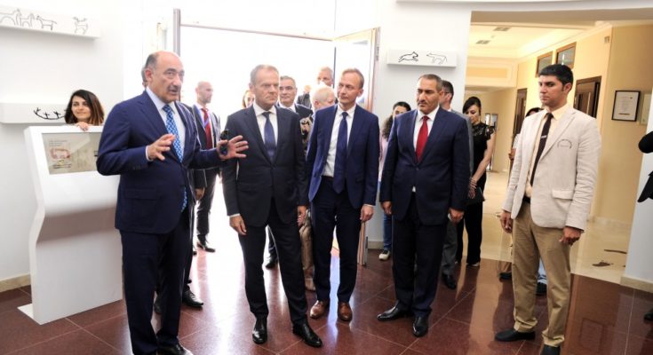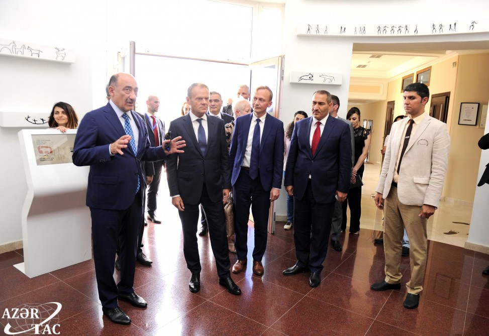 Donald Tusk ərazidə aparılmış tədqiqat işləri ilə və tarixi eksponatlarla maraqlanıb.