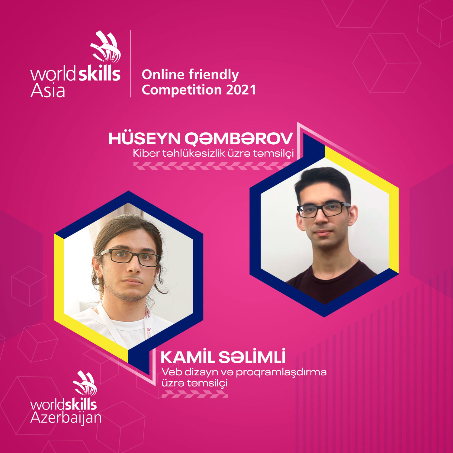 Təmsilçimiz Kamil Səlimli veb proqramlaşdırma, Hüseyn Qəmbərov isə kiber təhlükəsizlik istiqaməti üzrə Azərbaycanı təmsil etmək hüququ əldə edib. Beynəlxalq yarış 5 iyul-15 avqust tarixlərində WorldSkills Asia tərəfindən 13 bacarıq istiqaməti üzrə onlayn formatda təşkil edilməkdədir. 26 müxtəlif ölkə təmsilçisinin mübarizə aparacağı bacarıq yarışlarında Azərbaycan ilk dəfədir ki iştirak edir.