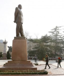 AZƏRTAC xəbər verir ki, Birinci vitse-prezident Mehriban Əliyeva və Heydər Əliyev Fondunun vitse-prezidenti Leyla Əliyeva ulu öndər Heydər Əliyevin Gəncə şəhərinin mərkəzində ucaldılan abidəsini ziyarət edərək önünə gül dəstələri qoydular.