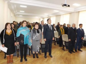 Konfrans iştirakçıları 20 Yanvar faciəsi şəhidlərinin əziz xatirəsini 1 dəqiqəlik sükutla yad etdilər. Konfransı giriş sözü ilə institutun direktoru, dosent Vüqar Bəşirov açaraq qeyd etdi ki, Azərbaycan xalqının tarixinə Qanlı Yanvar faciəsi kimi daxil olmuş 1990-cı il 20 Yanvar hadisələrindən artıq 29 il keçir. 20 yanvar hadisəsi xalqımızın tarixində həm faciəli gün, həm də qəhrəmanlıq səhifəsi kimi yadda qalır. 20 yanvar faciəsi Azərbaycan xalqının milli azadlıq mübarizəsinin simvolu olmaqla totalitar sovet rejiminin süqutu ərəfəsində onun cinayətkar mahiyyətini bütün dünyaya bir daha nümayiş etdirdi. 1990-cı il yanvarın 19-dan 20-nə keçən gecə Azərbaycan xalqının azadlıq, müstəqillik arzularını boğmaq üçün Bakıda dəhşətli qırğın törədən sovet imperiyasına ilk etiraz səsini ümummilli liderimiz Heydər Əliyev yüksəldib. Ulu öndər yanvarın 21-də Azərbaycanın Moskvadakı Daimi Nümayəndəliyində mətbuat konfransı keçirərək əliyalın xalqa qarşı törədilən terroru hüquqa, demokratiyaya, insanlığa zidd aksiya kimi pisləyərək sovet rəhbərliyinin cinayətkar əməllərini ifşa edib. Anım mərasimində çıxış edən natiqlər çıxış edərək bildirdilər ki, 20 Yanvar faciəsinin Azərbaycanın tarixində ölkəmizin azadlığı, müstəqilliyi və ərazi bütövlüyü uğrunda mübarizədə qəhrəmanlıq rəmzi kimi böyük əhəmiyyəti var. Həmin gün öz ölkəsinin, xalqının azadlığını, şərəf və ləyaqətini uca tutan Vətən övladları canlarından keçərək şəhidlik zirvəsinə yüksəldilər. 20 Yanvar faciəsi bizi yumruq kimi birləşdirdi və bütün dünya azərbaycanlılarının gücünü ifadə etdi. Xalqımız o müdhiş gecənin faciəsinin ağrısı ilə yaşayır, bu vəhşiliyi törədənlərə, xəyanət və fəlakətin səbəbkarlarına öz dərin nifrətini bildirir. Azərbaycan xalqı öz qəhrəman övladlarının fədakarlığını yüksək qiymətləndirərək hər il 20 Yanvarda onların xatirəsini dərin ehtiramla yad edir və bu faciəli, həm də qürürverici hadisənin mahiyyətini gənc və formalaşmaqda olan nəsilə çatdırır.