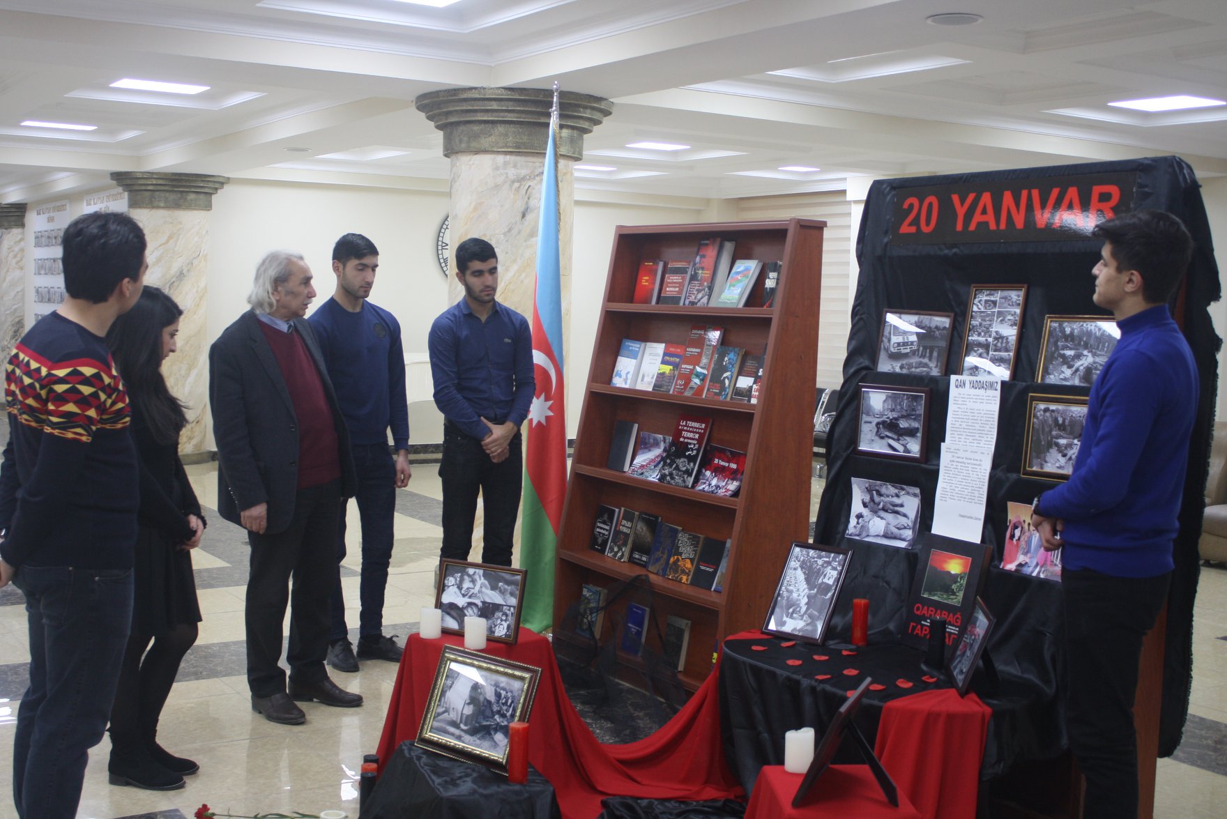 Azərbaycan xalqının tarixinə Qanlı Yanvar faciəsi kimi daxil olmuş 1990-cı il 20 Yanvar hadisələrindən artıq 29 il keçir. 1990-cı ilin yanvar qırğını nə qədər faciəli olsa da, Azərbaycan xalqının iradəsini, milli azadlıq uğrunda mübarizə əzmini qıra bilmədi. Həmin müdhiş gecədə həlak olan vətən oğulları Azərbaycanın tarixinə parlaq səhifə yazdılar, xalqın milli azadlığı, müstəqilliyi üçün yol açdılar. Bu gün müstəqil Azərbaycan dövlətinin tarixinə qanlı 20 Yanvar faciəsi xalqımızın şərəf və qəhrəmanlıq səhifəsi kimi yazılmışdır. Yanvarın 16-da Bakı Slavyan Universitetində Qanlı Yanvarda şəhid olan soydaşlarımızın xatirəsi yad olunub, universitetin foyesində stend hazırlanıb. Stenddə 20 Yanvar hadisələrini əks etdirən foto şəkillər, Qanlı Yanvar faciəsindən bəhs edən müxtəlif dillərdə yazılmış kitablar sərgilənib.