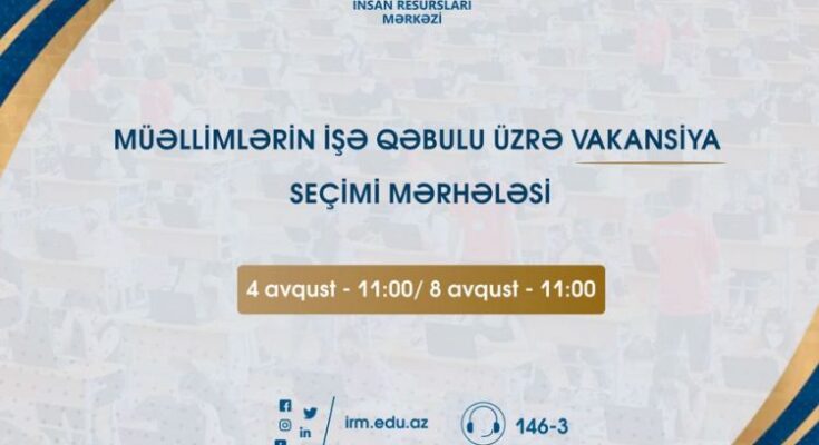 4 avqust saat 11:00-dan etibarən bütün fənlər üzrə müəllimlərin işə qəbulu müsabiqəsinin vakansiya seçimi mərhələsinə start veriləcək.