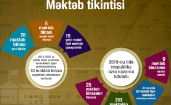 Yeni tədris ilinin əvvəlində Təhsil Nazirliyi tərəfindən təmir-tikinti işləri yekunlaşdırılmış 43 məktəb binası şagirdlərin istifadəsinə veriləcək. Onlardan 20-si yeni tikilən, 8-i əsaslı təmir olunan, 15-i isə modul tipli məktəbdir. 2019-cu ildə …
