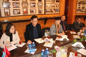 İnstitunun diektor müavini xanım Vang Xiangyu qəbula görə nümayəndə heyəti adından rektora dərin təşəkkürünü bildirərək ADAU ilə əməkdaşlıq əlaqələrinin genişlənməsi, ipəkçilik sahəsində birgə elmi-tədqiqat işlərinin və kadr hazırlığının aparılmasının prioritet istiqamətlərindən danışıb.