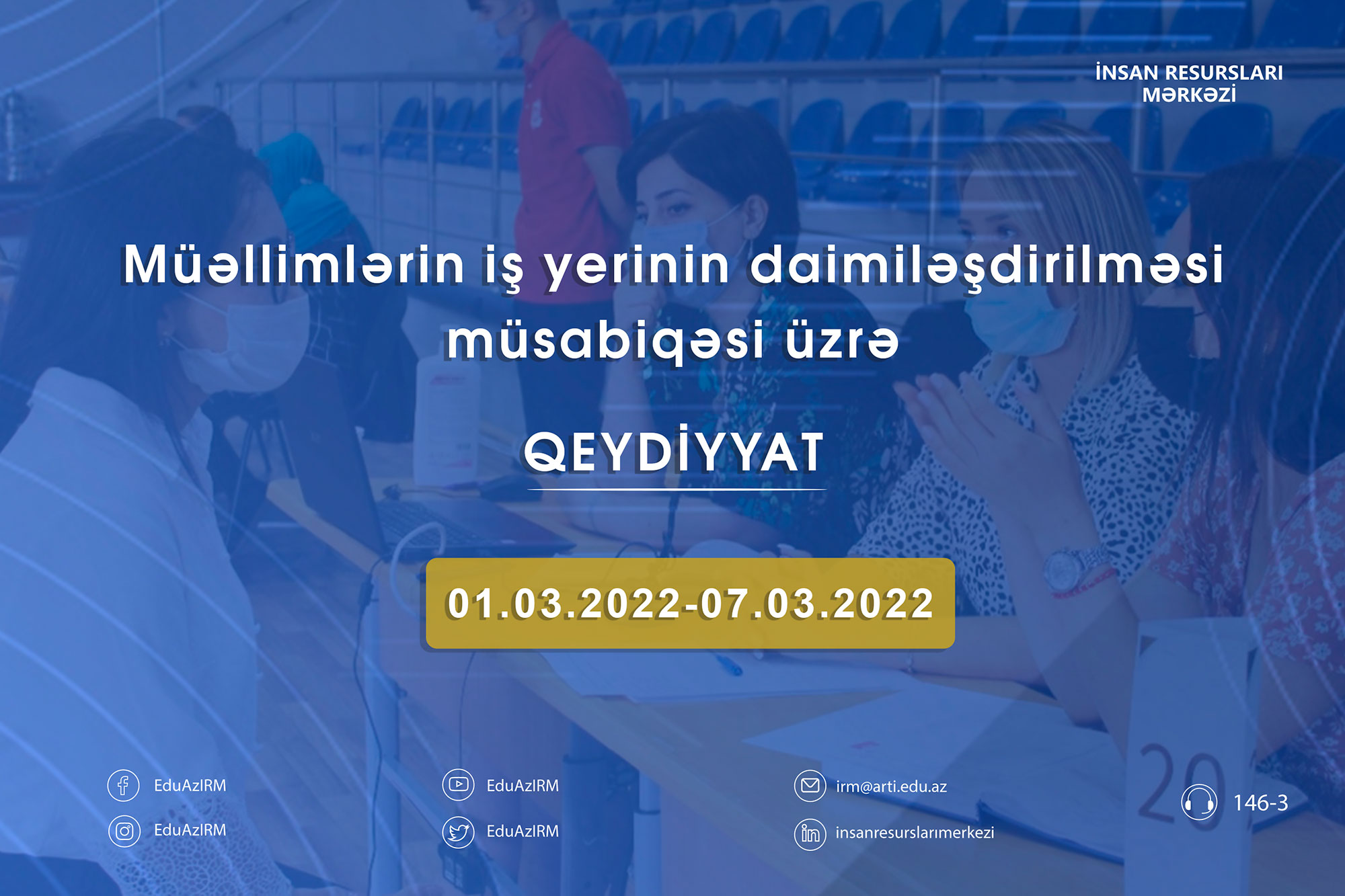 1 mart tarixindən 2021-2022-ci tədris ili üzrə müəllimlərin işə qəbulu müsabiqəsində müddətli müqavilə əsasında işə qəbul olunmuş namizədlərlə müddətsiz əmək müqaviləsinin bağlanılması məqsədi ilə daimiləşmə müsabiqəsinə start verilir.