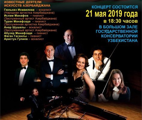 Azərbaycanın Özbəkistandakı səfirliyi və bu qurumun nəzdindəki Heydər Əliyev adına Azərbaycan Mədəniyyət Mərkəzinin təşkilatçılığı ilə keçiriləcək konsertdə Azərbaycanın Xalq artisti Gülnaz İsmayılova, Əməkdar artistlər Anar Şuşalı və Ərəstun Quliyev klassik Azərbaycan mahnılarını, Əməkdar artistlər İslam Manafov, Turan Manafzadə, beynəlxalq müsabiqələr laureatları Fəqan Həsənli, Abuzər Manafzadə fortepianoda milli musiqi nümunələrini ifa edəcəklər.