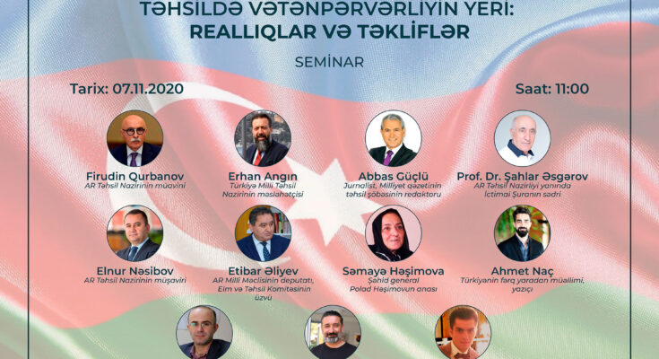 Noyabrın 7-də  Təhsil Nazirliyi yanında İctimai Şura və T-NETWORK platformasının birgə təşkilatçılığı ilə “Təhsildə vətənpərvərliyin yeri: reallıqlar və təkliflər” adlı onlayn seminar keçirilib.
