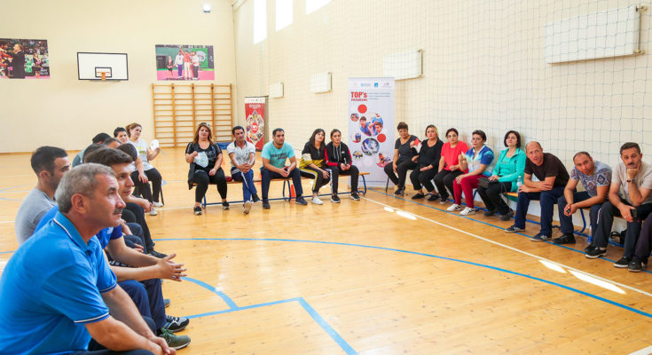 Təlimlərə Gəncədə fəaliyyət göstərən 49 ümumtəhsil müəssisəsindən 200-ə yaxın fiziki tərbiyə müəllimi cəlb olunub. TOPs metodologiyası üzrə təşkil oluan 3 günlük təlimlər zamanı fiziki tərbiyə fənninin məzmunu ilə bağlı müzakirələr aparılır, müasir təlim üsulları vasitəsilə dərslərin tədrisinin yüksəldilməsi üçün praktiki məşğələlər keçirilir. Həmçinin, dərslərin səmərəli tədris edilməsi üçün TOPs Oyun–metodiki tədris kartlarından istifadə qaydaları müəllimlərə izah edilir.