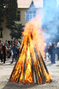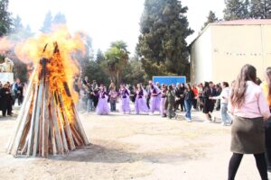 Bayram şənliyi Kollecin həyətində alovlandırılan möhtəşəm Novruz tonqalının hərarəti onun ətrafına yığışan insanlar tərəfindən böyük coşğu ilə qarşılanıb.