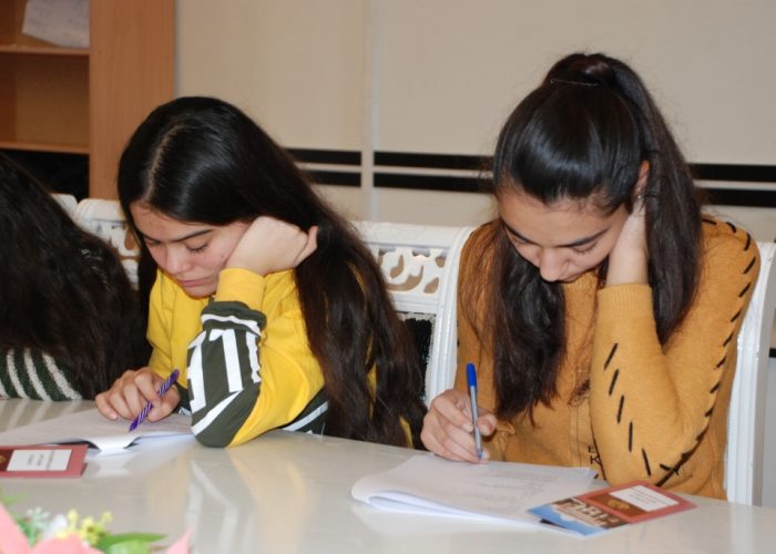 Sonra şagirdlər xarici dil üzrə biliklərini yoxlamaq üçün olimpiadaya qoşulublar.
