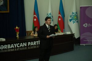 “Gəncə Gənclər Debat Forumu: Yaz, 2022”-nin final mərhələsində Gəncə Gənclər Evinin debat klubunun “ Night of fire” (Camal Məmmədov, Ömər Məmmədli, NərminTağıyeva) və ADAU debat klubunun “Larissa” komandaları (Ayşə Hümmətova, Səma Qocayeva, Nərmin Məmmədova) debat aparıblar.