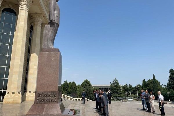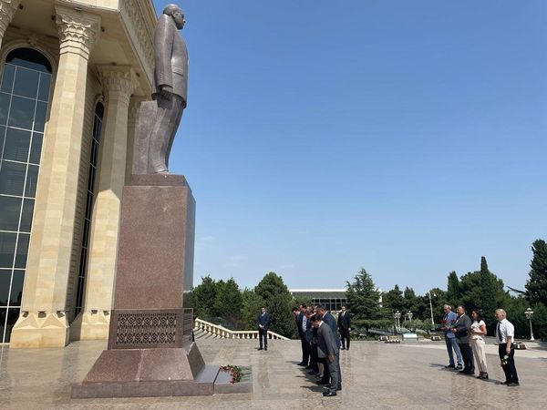Tədbirdən əvvəl ulu öndər Heydər Əliyevin abidəsi ziyarət olunub, önünə tər güllər düzülüb.