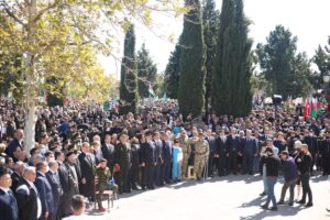 27 sentyabr – Anım Günü ilə əlaqədar şəhər tədbiri Gəncənin Şəhidlər xiyabanında davam edib. Tədbir iştirakçıları ilk olaraq burada yeni quraşdırılan və üzərində Gəncə şəhidlərinin şəkil və məlumatlarını əks etdirən lövhəyə baxış keçiriblər. Daha sonra Gəncə Şəhər İcra Hakimiyyətinin başçısı Niyazi Bayramov və Azərbaycan Respublikası Müdafiə Nazirliyinin müavini – Quru Qoşunlarının komandanı Ənvər Əfəndiyev “Əbədi məşəl” abidəsi önünə əklil qoyublar.