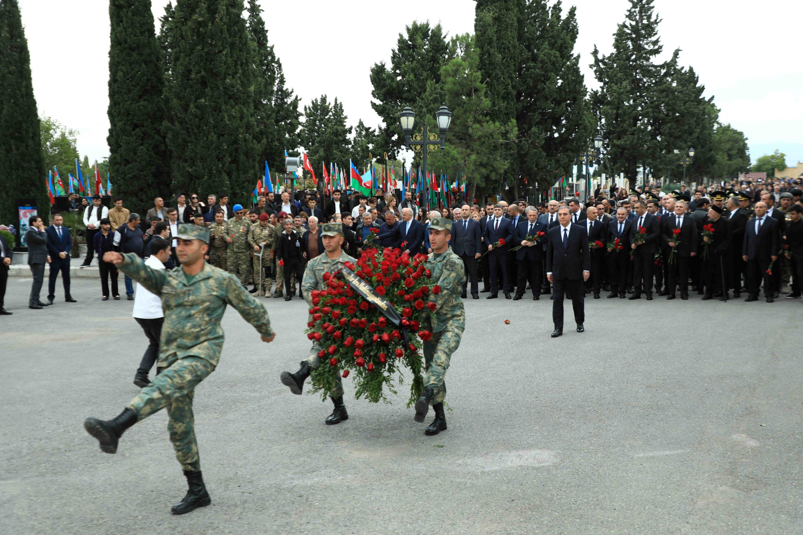 Gəncə şəhər Şəhidlər Xiyabanında baş tutan anım mərasimində Gəncə Şəhər İcra Hakimiyyətinin başçısı Niyazi Bayramov, Türkiyənin Gəncədəki Baş konsulu Recep Öztop, Gürcüstanın Gəncədəki Baş konsulu Kaxaber Abdaladze, YAP Gəncə şəhər təşkilatının sədri Bayram Aslanov, Gəncə Apellyasiya Məhkəməsinin sədri Toğrul Əli, Gəncə Şəhər Məhkəməsinin sədri Xaqani Tağıyev, Qafqaz Müsəlmanlar İdarəsinin Qazılar Şurasının nümayəndəsi Hacı Tahir Abbasov, hüquq-mühafizə orqanlarının rəhbərləri, Gəncədə fəaliyyət göstərən universitet rektorları, Gəncə Şəhər İcra Hakimiyyəti başçısı Aparatının məsul əməkdaşları, bələdiyyə sədrləri, idarə, müəssisə və təşkilat rəhbərləri, müharibə iştirakçıları, şəhid ailələri və ictimaiyyət nümayəndələri iştirak ediblər.