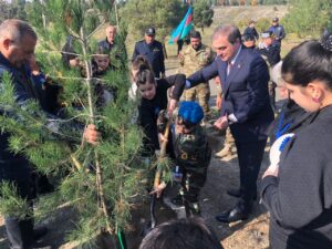 Gəncənin “İstiqlal” parkında təşkil olunan bayram tədbirindən sonra şəhər rəhbərliyi və qonaqlar Heydər Əliyev Park-Kompleksinə gəliblər. Burada 8 Noyabr – Zəfər Gününə həsr olunan ağacəkmə aksiyası baş tutub. Ağacəkmə aksiyası zamanı rəsmilər, şəhər ictimaiyyətinin nümayəndələri və gənclərin iştirakı ilə ümumilikdə 2500 eldar şamı və digər həmişəyaşıl ağaclar əkilib.