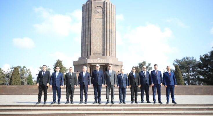 Əvvəlcə qonaqlar Nizami Gəncəvi Məqbərəsini ziyarət edərək böyük mütəfəkkirin xatirəsini ehtiramla yad edib, məzarı önünə gül dəstələri qoyublar. Daha sonra mövzu ilə bağlı sərgiyə baxış keçirilib.