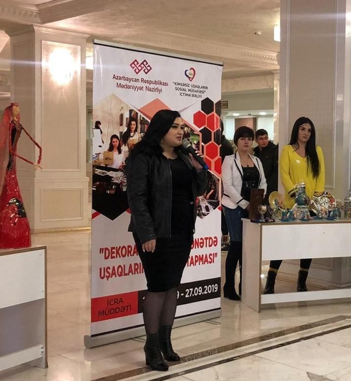 Azərbaycan Respublikası Mədəniyyət Nazirliyinin maliyyə dəstəyi, “Kimsəsiz Uşaqların Sosial Müdafiəsi” İctimai Birliyinin təşkilatçılığı ilə Gəncə şəhərində həyata keçirilən “Dekorativ-tətbiqi sənətdə uşaqların özlərini tapması” adlı 4 aylıq layihənin yekununda Gəncə Dövlət Filarmoniyasında böyük sərgi təşkil olundu.