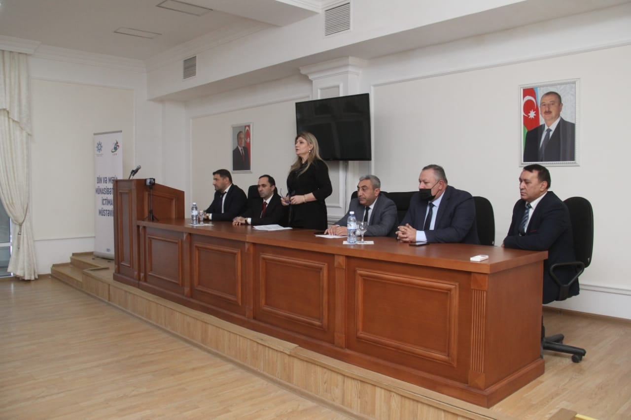 Gəncə Şəhər İcra Hakimiyyəti və Dini Qurumlarla İş üzrə Dövlət Komitəsinin tabeliyində Mənəvi Dəyərlərin Təbliği Fondunun dəstəyi, “Dialoq və İnkişaf Naminə” İB-nin təşkilatçılığı ilə “Din və media münasibətləri ictimai müstəvidə” mövzusunda görüş keçirilib. Görüşdə Gəncə Şəhər İcra Hakimiyyəti başçısı Aparatının İctimai-siyasi və humanitar məsələlər şöbəsinin müdir müavini – dini qurumlarla işin təşkilatçısı Azər İbrahimov, Dini Qurumlarla İş üzrə Dövlət Komitəsinin Gəncə bölgəsi üzrə şöbə müdiri Həsən Məmmədov, “Dialoq və İnkişaf Naminə” İB-nin sədri Çingiz Bayramov, ADAU-nun Tərbiyə işləri üzrə prorektoru Aidə Qasımova, Gəncədə fəaliyyət göstərən dini icmaların üzvləri, ziyalılar, tələbə-gənclər və KİV nümayəndələri iştirak ediblər.