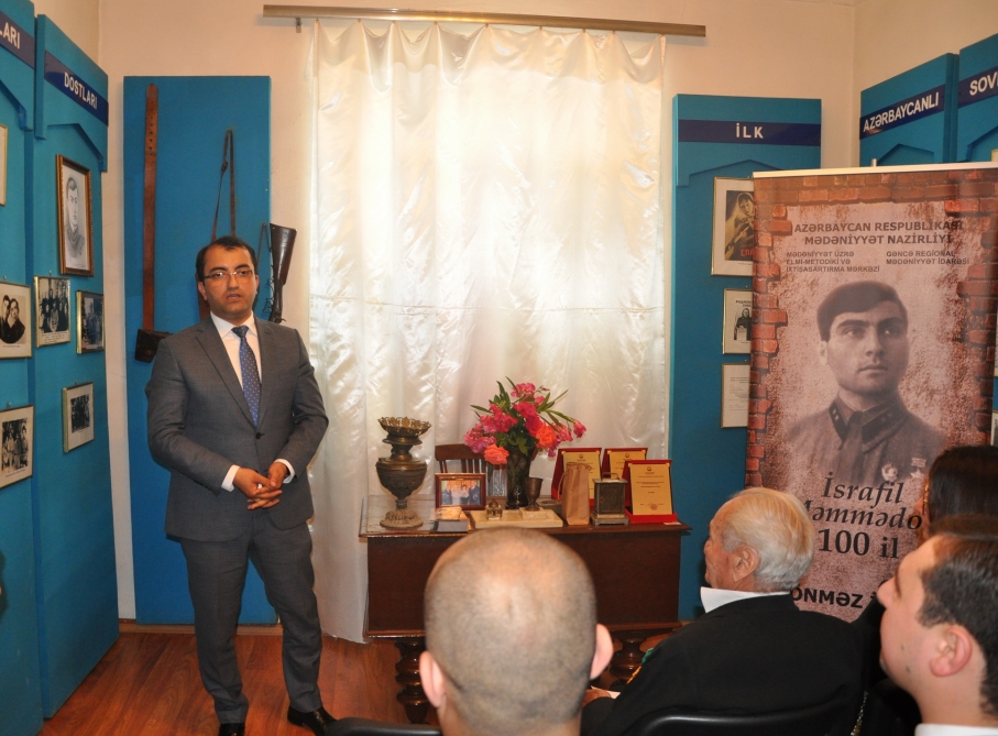 Etmtv. news AZƏRTAC-a istinadən xəbər verir ki, Gəncə şəhərində “Mədəniyyət həftəsi” çərçivəsində Sovet İttifaqı Qəhrəmanı adını almış ilk azərbaycanlı İsrafil Məmmədovun 100 illik yubileyinə həsr olunmuş “Dönməz iradə” adlı seminar keçirilib. İ.Məmmədovun ev-muzeyində keçirilmiş tədbir Mədəniyyət üzrə Elmi-Metodiki və İxtisasartırma Mərkəzinin və Gəncə Regional Mədəniyyət İdarəsinin birgə təşkilatçılığı ilə baş tutub.