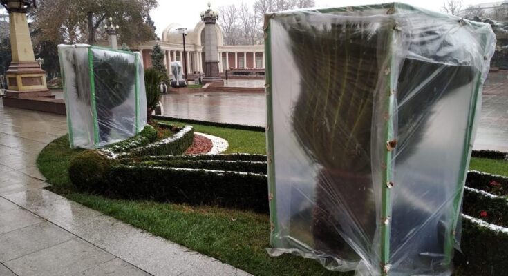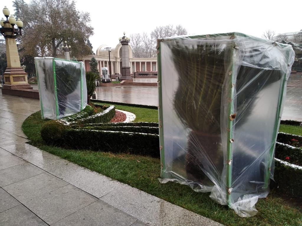 Xarici ölkələrdən gətirilən Siqas, Finik – xurma ağacları, həmçinin müxtəlif kiçik ölçülü qızıl gül kollarının şaxtadan qorunması üçün mühafizə zolağı yaradılır. Bitkilər polietilen örtüklərlə bükülərək şaxtadan mühafizə edilirlər. Mülayim hava şəraiti müşahidə olunan günlərdə isə həmin örtüklər açılır və ağacların təmiz hava ilə təması təmin edilir.