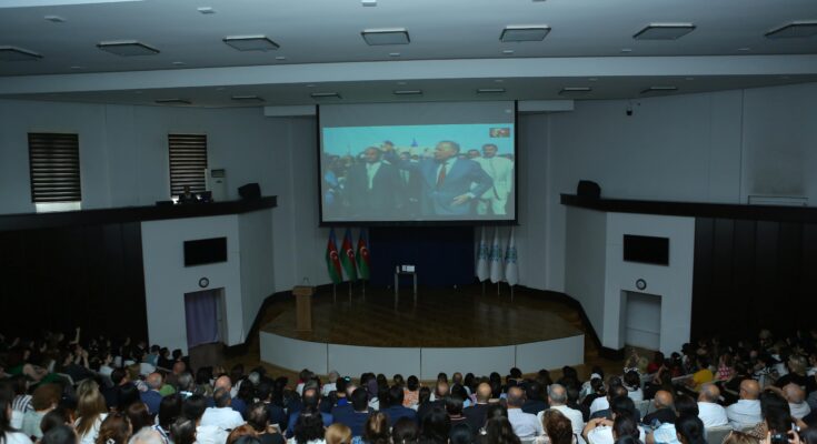 Azərbaycan Dövlət Aqrar Universitenin rektoru Zəfər Qurbanov, Bakı Slavyan Universitetinin prorektoru Fikrət Cahangirov, Gəncə Dövlət Universitetinin IV kurs tələbəsi Nigar Məmmədli çıxış edərək, müstəqil Azərbaycanın memarı və qurucusu Heydər Əliyevin bütün dövrlərdə öz milləti, xalqı üçün gördüyü işlərdən danışıblar: ”Azərbaycan tarixi dahi dövlət xadimi Heydər Əliyevin fəaliyyəti ilə qırılmaz surətdə bağlıdır. Ulu Öndərin xidmətləri sayəsində xalqımız əvvəlcə siyasi və iqtisadi müstəqilliyinin möhkəm təməlini yaradıb, daha sonra isə müstəqil dövlətini qurmaq, qorumaq və yaşatmaq üçün tarixin verdiyi imkanı reallaşdırıb”.