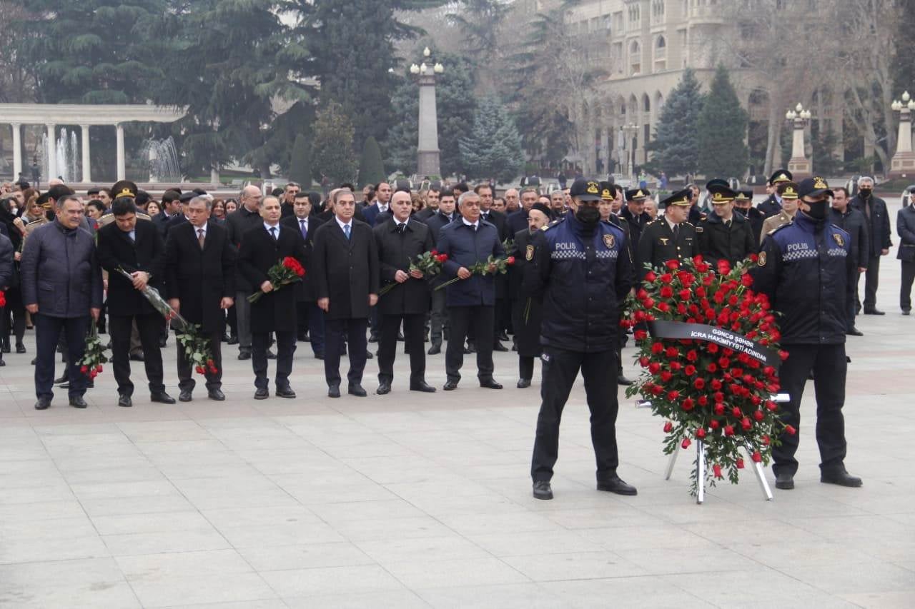 Gəncə Şəhər İcra Hakimiyyətinin başçısı Niyazi Bayramov, Nizami və Kəpəz rayon İcra Hakimiyyətlərinin başçıları, bələdiyyə sədrləri, hüquq-mühafizə orqanlarının, həmçinin şəhərdə fəaliyyət göstərən idarə, müəssisə və təşkilatların rəhbərləri Ulu öndər Heydər Əliyevin şəhərin Baş meydanında ucaldılan abidəsini ziyarət edib, əziz xatirəsinə dərin hörmət və ehtiramlarını ifadə ediblər.