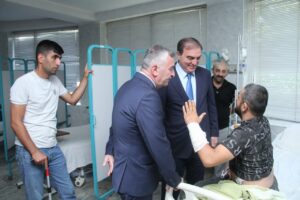 Bu gün isə Gəncə Şəhər İcra Hakimiyyətinin başçısı Niyazi Bayramov Kəlbəcər rayonunda minaya düşərək xəsarət alan polkovnik İsbəndiyarov Vüqar Tofiq oğlunu ziyarət edib. Şəhər rəhbəri hazırda stasionar müalicə alan polkovnikin səhhəti ilə maraqlanıb. Həkimlər hərbi qulluqçumuzun aldığı xəsarətlərlə bağlı şəhər rəhbərinə məlumat verib, vəziyyətinin stabil olduğunu bildiriblər. Niyazi Bayramov hərbçimizə, müvafiq köməklik göstərilməsi barədə aidiyyəti üzrə tapşırıq verib.