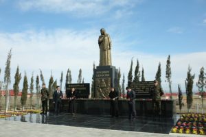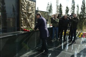 Gəncə şəhər İcra Hakimiyyətinin başçısı Niyazi Bayramov və ictimaiyyət nümayəndələri Xocalı abidəsinin önünə gül dəstələri qoyublar.