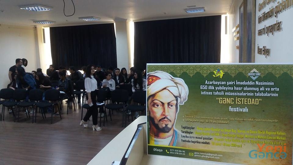 Gəncə şəhər Gənclər və İdman Baş İdarəsi və Gəncə Dövlət Regional Kollecinin təşkilatçılığı, Gəncə Gənclər evi, Uşaq Gənclər İnkişaf Mərkəzi və Məhsəti Gəncəvi Mərkəzinin tərəfdaşlığı ilə İmadəddin Nəsiminin 650 illik yubileyinə həsr olunmuş “Gənc İstedad” adlı festivalının bədii qiraət hissəsi keçirilib.