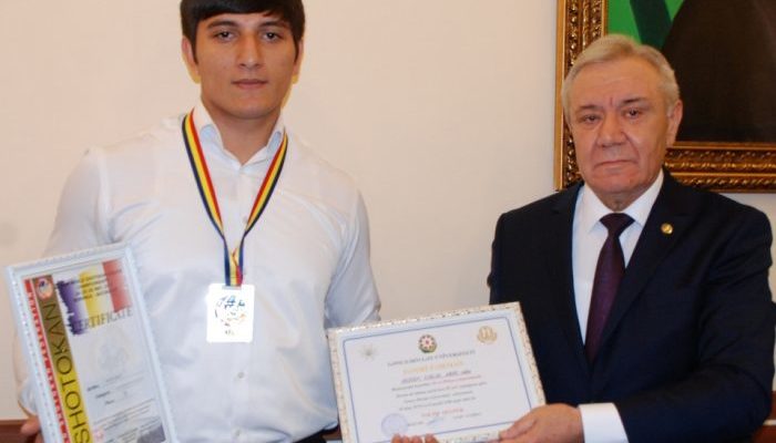 Sonda rektor Fəxri fərmanı və pul mükafatını idmançıya təqdim edib.