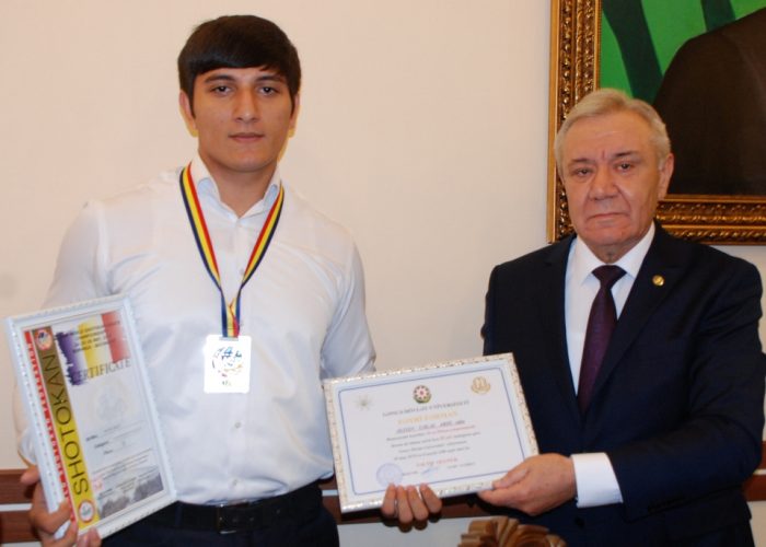 Sonda rektor Fəxri fərmanı və pul mükafatını idmançıya təqdim edib.
