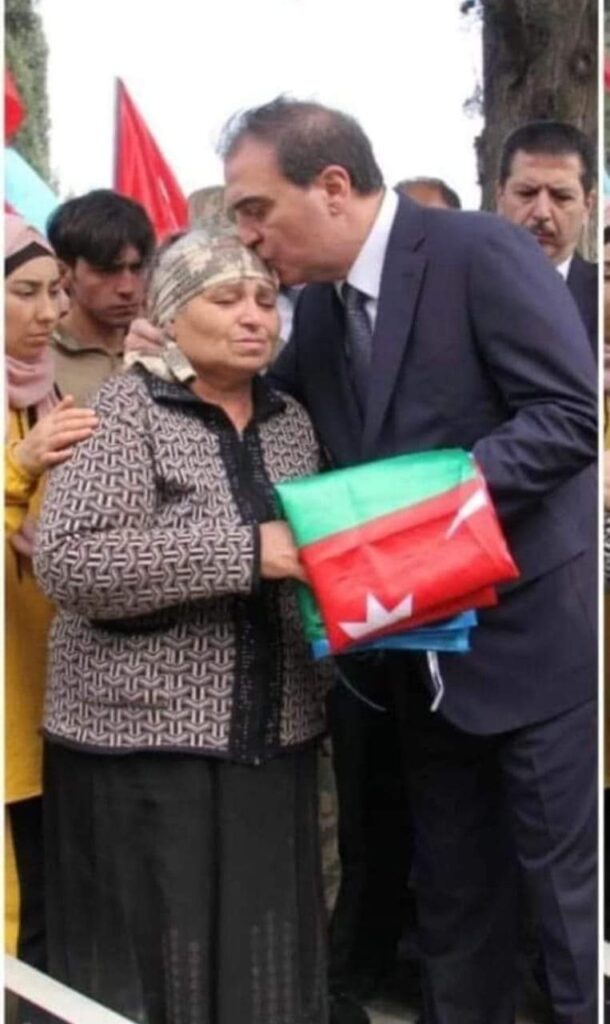 Bu kadr Gəncə şəhər icra başçısının şəhid anası qarşısında baş əydiyi, alnından öpdüyü  anı əbədiləşdirən sıradan bir şəkil deyil, icra başçısı-vətəndaş münasibətlərinin səmimiliyini əks etdirən bir görüntüdür. Alından öpmək qayğıkeşliyin, doğmalığın, xeyirxahlığın əlaməti, qarşı tərəfə həmişə dayaq olacağının ifadəsidir. Bu həm də başımızı uca edənlərin başımız üstə yeri olduğunun tablosudur.