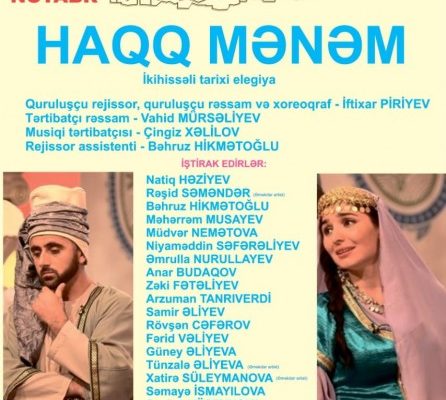 Noyabrın 19-da R.Behbudov adına Azərbaycan Dövlət Mahnı Teatrının səhnəsində təqdim olunacaq tamaşa şair-dramaturq İftixarın “Haqq mənəm” pyesi əsasında hazırlanıb.