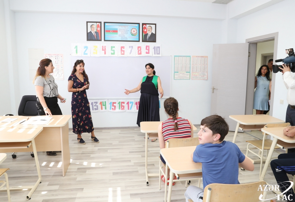 Əvvəlcə Şüvəlan qəsəbəsindəki sağlamlıq imkanları məhdud, valideyn himayəsindən məhrum olmuş uşaqlar üçün 4 nömrəli Respublika xüsusi internat məktəbinə gələn Heydər Əliyev Fondunun vitse-prezidenti Leyla Əliyeva burada uşaqlarla görüşdü, onlar üçün yaradılan şəraitlə tanış oldu.
