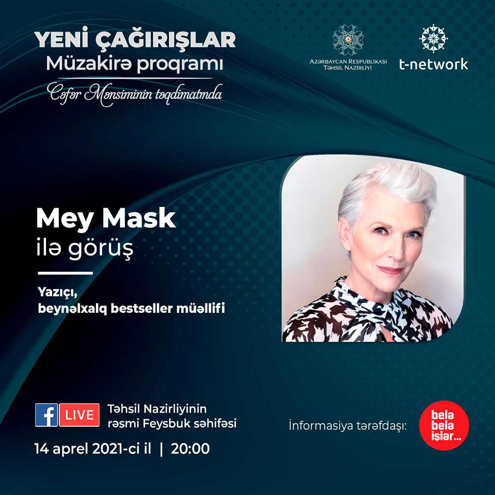 “Yeni çağırışlar” onlayn müzakirə proqramının 14 aprel saat 20:00-da yayımlanacaq növbəti buraxılışının qonağı yazıçı, beynəlxalq bestseller müəllifi Mey Mask olacaq.