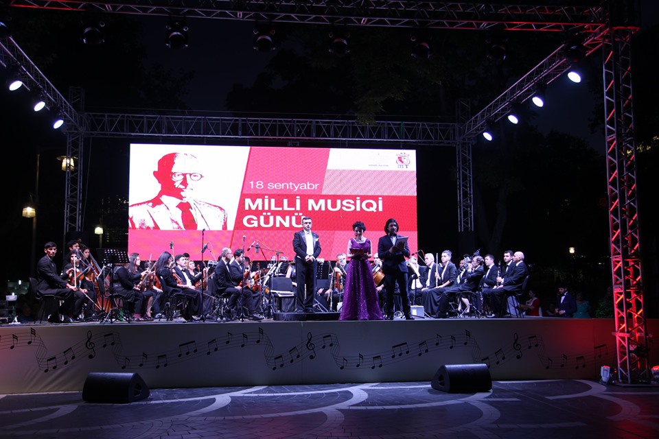 Sentyabrın 18-də axşam Azərbaycan Dövlət Akademik Musiqili Teatrının kollektivi Milli Musiqi Günü münasibətilə Fəvvarələr meydanında geniş konsert proqramı ilə çıxış edib.
